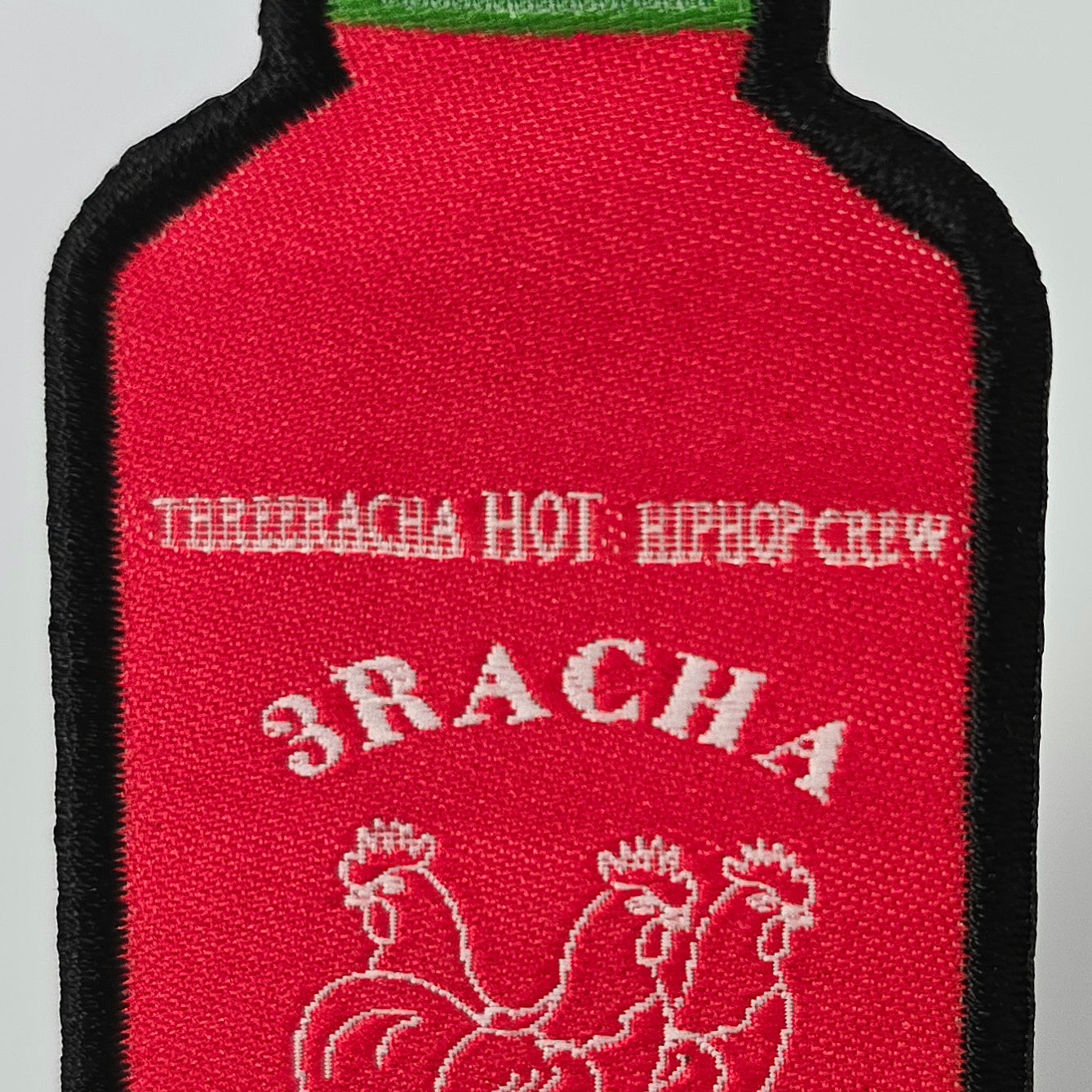Spice up your life with a little 3RACHA! This iron-on woven patch design takes the classic hot sauce bottle and makes it even more iconic by adding elements of the hip hop trio's album cover and the lyrics '비구름 세 점의 마찰' from the unit song of the same name '3RACHA'.