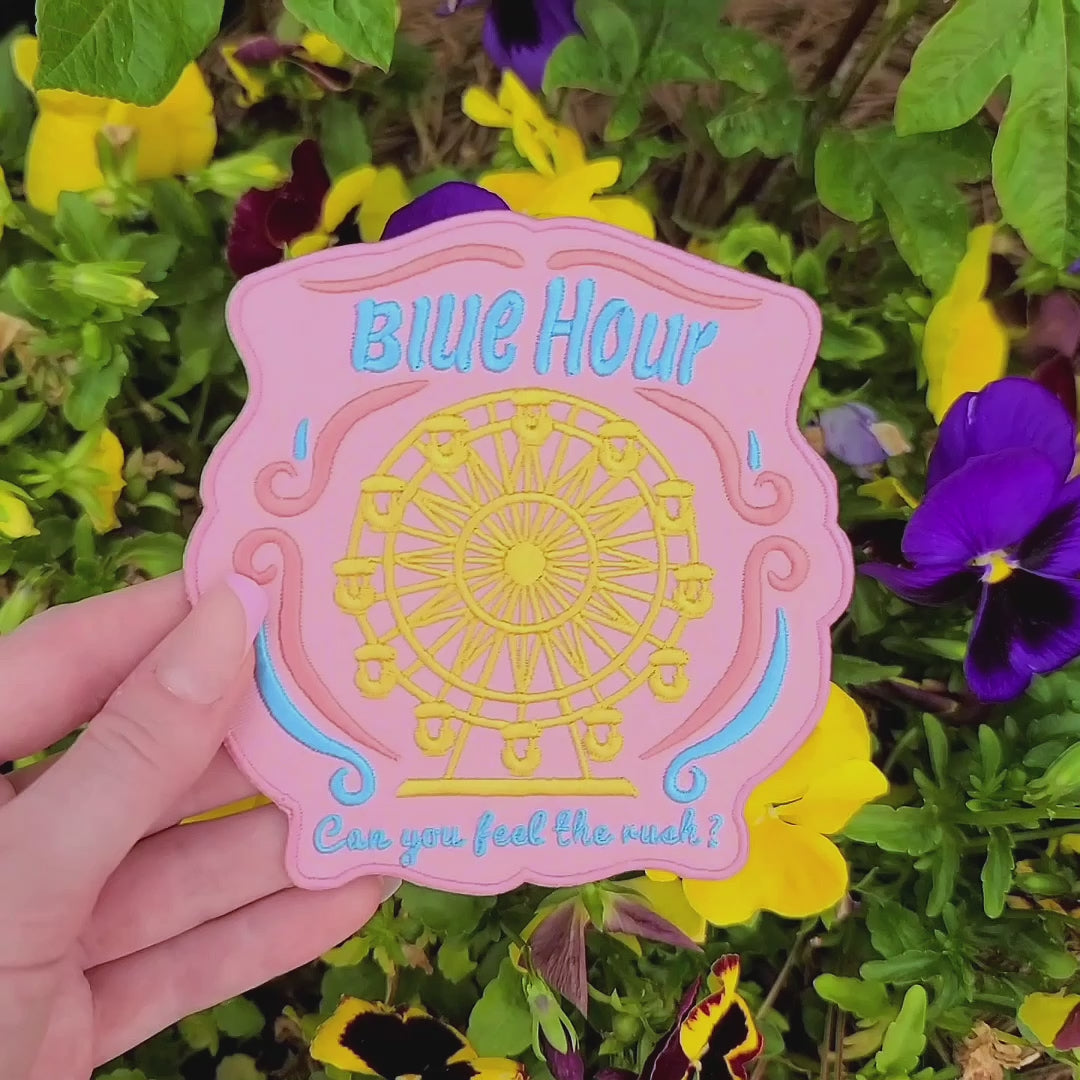 Inspired by the imagery in TXT’s ‘Blue Hour’ Music Video, this beautiful iron-on patch is a perfect addition to any spring pastel look!